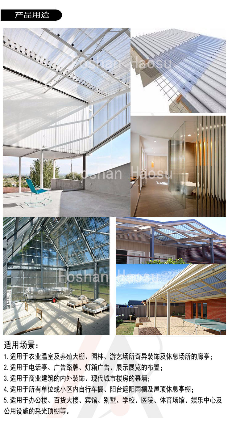 3:抗沖擊:強(qiáng)度是普通玻璃的10倍,是一般浪瓦的3至5倍,是鋼化玻璃的2倍,幾乎沒有斷裂的危險性。 阻燃性:據(jù)國家GB8625-88測試,屬阻燃B1級,無火滴、無毒氣。